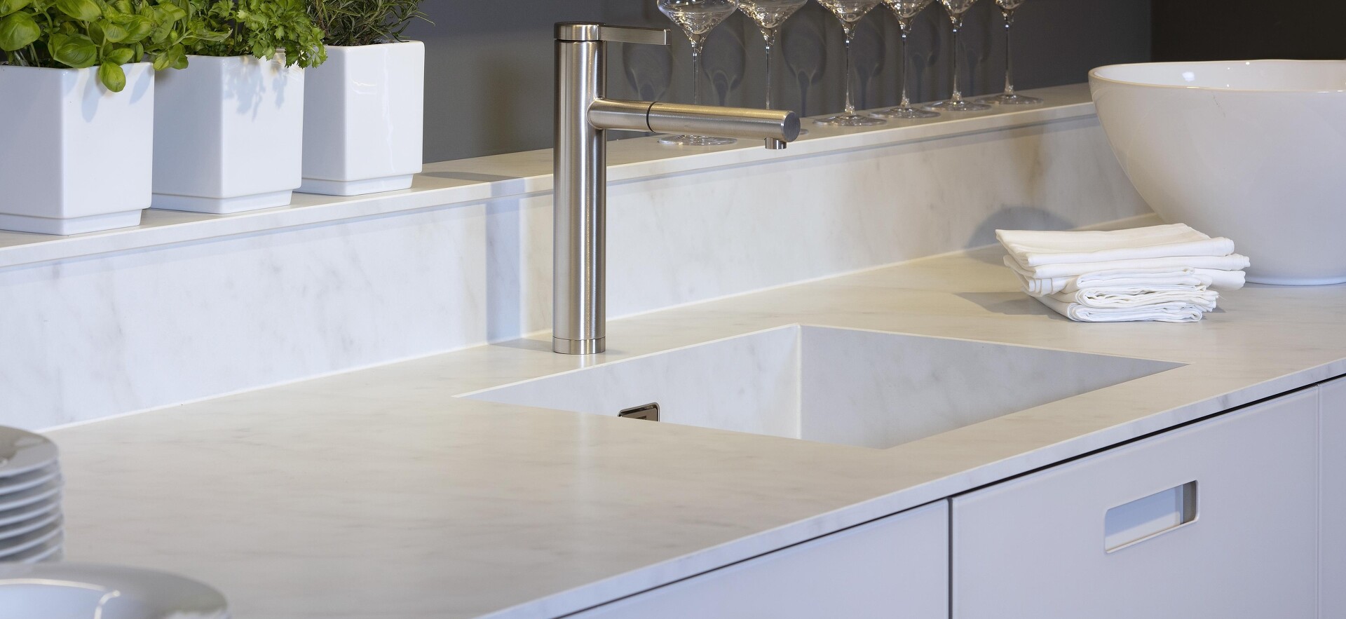 Vielleicht ist es Ihnen schon in der ein oder anderen Einrichtungszeitschrift oder in einer Küchenausstellung aufgefallen: In Designküchen wird häufig darauf verzichtet, die Arbeitsplatte über die Küchenunterschränke überstehen zu lassen, besonders häufig dann, wenn extradünne Arbeitsplatten verwendet wurden. Das sieht zugegeben um einiges schicker aus, birgt aber natürlich den Nachteil, dass wenn Flüssigkeiten beim Hantieren heruntertropfen, sie auch an den Schranktüren landen werden. Steht die Arbeitsplatte wenige Zentimeter über, geschieht dies nicht so schnell, und es lassen sich auch Krümel und Schnippelreste um einiges leichter in den unterhalb der Kante gehaltenen Mülleimer wischen.