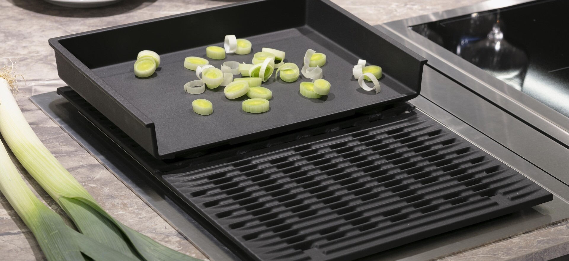 Wenn auch Sie in dieser Art braten möchten, haben wir eine gute Nachricht für Sie: Es gibt Kochfeld-Systeme, bei denen eine Teppanyaki-Platte bereits integriert ist. Dazu empfehlen wir einen leistungsstarken, aber leisen Dunstabzug oder eine Muldenlüftung.