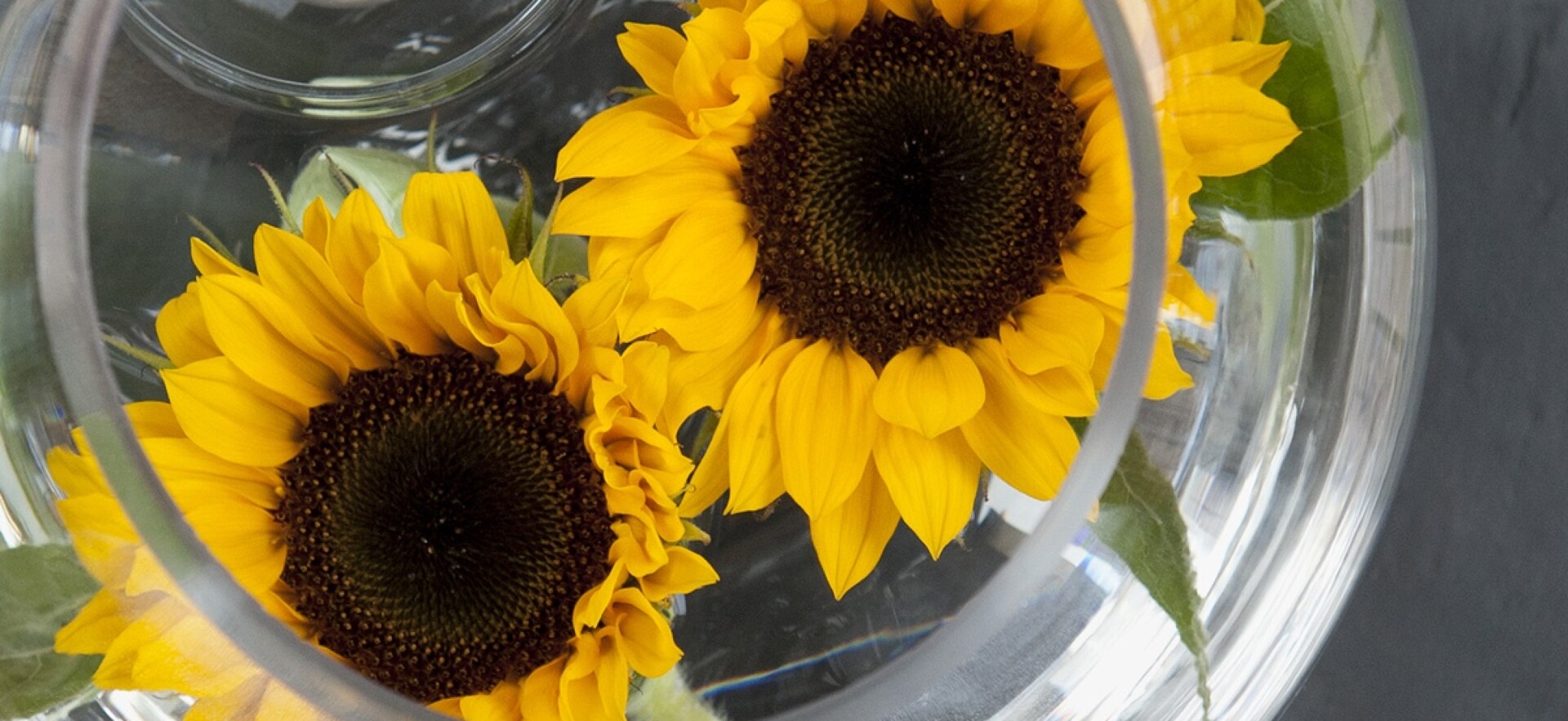Aber aufgepasst: Sonnenblumen mögen die Sonne nur, solange sie im Boden wachsen. In der Vase sollten sie besser schattig und leicht kühl stehen. Dann bleiben sie länger erhalten.